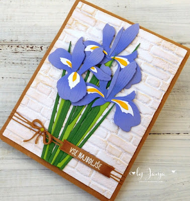 OdgovoriIzbrišiA gorgeous arrangement of those stunning die cut iris! What a beautiful card, Janja. Thank you so much for joining the challenge at Allsorts.